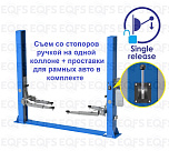 Гарантия до 36 мес. Усиленная конструкция подъемных кареток. Срок эксплуатации подъемника – не ограничен. Поднимает ВСЁ – от «Оки» до «LC200» Съем со стопоров ручкой на одной колонне (экономия времени). В комплекте проставки для рамных авто. Ширина проезда – 2560 мм. Высота подъёма h=110÷1825 мм. 220/380В. г/п 4 тонны.