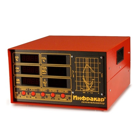 Автомобильный 4-х компонентный газоанализатор «Инфракар М-1Т.01 предназначен для измерения объемной доли оксида углерода (СО), углеводородов (CН) (в пересчете на гексан), диоксида углерода (СО2), кислорода (О2), в отработавших газах автомобилей с бензиновыми двигателями. Лямбда + Тахометр + RS-232 + Автослив конденсата + Автоподстройка нуля + Работа с ЛТК и мотортестерами. Внесен в Госреестре средств измерений РФ, Республики Беларусь и Казахстан.