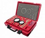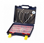 Тестер топливной системы впрыска. Позволяет диагностировать абсолютно любые топливные системы впрыска автомобилей (Европа, Россия, Азия, Америка и т.д.) и находить неисправный элемент методом измерения давления. Достоинством является высокоточный манометр, диаметром 63 мм, с ценой деления 0,1 BAR. В комплекте порядка 80 адаптеров.