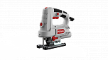 Мощность 850 Вт. Глубина реза сталь/дерево 10-100 мм. Производительность 800–3000 ходов пилки в минуту. Вес – 2,4 кг. Рукоятка с прорезиненной поверхностью. Эта модель лобзика оснащена: Функция плавного пуска, регулируемая металлическая подошва и кнопка фиксации выключателя, лазерный указатель направления, подсветка, быстросъемное крепление пилки, система маятникового хода, удобно вынесенный на ручку регулятор оборотов, возможность подключения пылесоса.