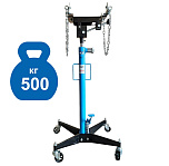 Стойка трансмиссионная гидравлическая г/п 500 кг. для снятия/установки КПП, мостов, редукторов, суппортов и др. агрегатов автомобиля. Высота подъема 870 мм. Двухплунжерный насос. Оборудована площадкой с цепями для фиксации агрегата. Вес: 59 кг.