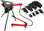 16 тонн. На подставке. Трубогиб для трубы диаметром от 1/2 до 3 дюймов (15-80 мм) с толщиной стенки трубы (2,75-4 мм). Ход поршня 285 мм. В комплекте 8 пуансонов: 1/2", 3/4", 1", 1-1/4", 1-1/2", 2", 2-1/2", 3".