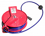 Катушка для воздуха. Металлический корпус, внешний диаметр Ø33 см, широкое внутреннее пространство и легкость подкатки, без усилия. Угол поворота шарнирного механизма 180° обеспечивает широкую рабочую зону захвата. Длина шланга: Ø15 м. Диаметр: Ø8 х Ø12 мм. Резьба : 1/4".