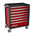 7 ящиков. Для хранения инструмента в ЕВРОЛОЖЕМЕНТАХ. Боковые панели с перфорацией (для установки аксессуаров). Цельносварная конструкция корпуса тележки. Центральный замок Euro-Lock. Шариковые направляющие полного выдвижения. Размеры (высота x ширина x глубина): 850 х 700 х 460 мм. Вес: 62,6 кг.