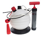 Устройство предназначено для откачки технических жидкостей посредством разряжения, и опустошения емкости повышенным давлением. Разряжение создается при воздействии на ручной привод устройства, и/или при подключение к устройству сжатого воздуха. Можно перекачивать трудновоспламенимые, водонерастворимые жидкости при соблюдении максимально допустимой температуры 1-95°C. Емкость: 10 л. Рабочее давление (пневмопривод): 2.8-12 бар.