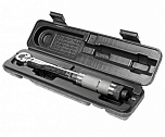 Ключ динамометрический 1/4". Диапазон усилий затяжки: 2-24 Н·м. Длина: 280 мм. Тип: щелчковый. Количество зубцов - 24. Динамометрический ключ щелчкового типа. Поставляется в ударопрочном кейсе.