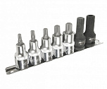 Головки изготовлены из закаленной хром-ванадиевой стали. Полированная поверхность. В набор входит планка крепления и хранения головок.Набор 9 предметов (Е10, Е11, Е12, Е14, Е14, Е16, Е18, Е20, Е22, Е24).
