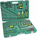Набор инструментов 1/4" & 1/2" 6-гранный (в кейсе) 85 предметов. В наборе: головки торцевые 1/4", головки с насадкой HEX 1/4", головки с насадкой TORX 1/4", головки с шлицевой насадкой 1/4", головка с насадкой PH 1/4", насадки PZ 1/4", головки торцевые 1/2", свечная головка 1/2", насадка 5/16 HEX 1/2", насадки 5/16 TORX 1/2", насадки 5/16 PH 1/2" для ударной отвертки PH3, PH4, насадки 5/16 PZ 1/2", держатель бит: 1/2х5/16, трещотка 1/4 36 зубцов (резиновая ручка), удлинитель 1/4 50 и 100мм, кардан 1/4", вороток-отвертка 1/4", вороток 1/4" с плавающей головкой, гибкий вал 1/4", трещотка 1/2 36 зубцов, удлинитель 1/2" 125 и 250мм, кардан 1/2", переходник 3/8х1/2 с отверстием, ключи рожково-накидные.