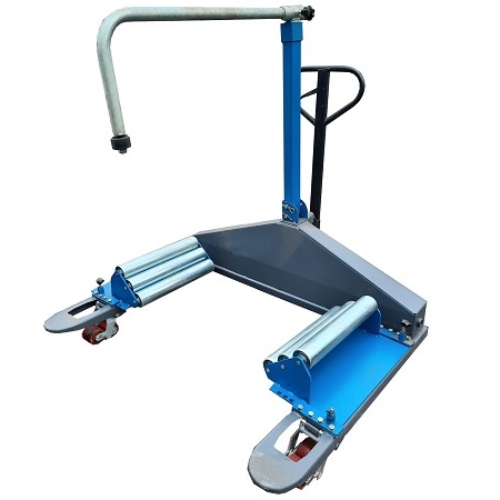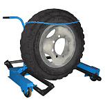 Тележка гидравлическая передвижная для снятия и транспортирования колёс и колёсных пар грузовых автомобилей, максимальная масса поднимаемого груза 750 кг, максимальная высота подъема 400 мм, для колес с наружным диаметром от 800 до 1400 мм. Привод подъема гидравлический, ножной педалью.