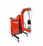 Стойка (тележка) монтажно-транспортировочная модели "СМТ-1200" (ТМТ-1200) предназначена для подъёма/опускания и транспортировки крупногабаритных шин/колёс весом до 1200 кг. Максимальный типоразмер шин до 24.00R/-35 или аналогичных. Облегчает процесс монтажа/демонтажа непосредственно на транспортном средстве. Имеет ручной привод вертикального перемещения каретки.