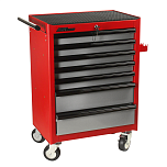 В комплекте: Наборы инструмента 578 предмета + Инструментальный ящик JTC-5639 (3 секции) + Тележка для инструмента JTC-3931. 7 выдвижных ящиков. Удобная большая ручка. Все ящики снабжены быстросъемными полозьями на роликах, полностью выдвигаются и легко вынимаются из тележки. Каждый ящик оборудован двумя индивидуальными фиксаторами, которые предотвращают произвольное открытие ящика во время передвижения тележки. Наличие центрального замка.