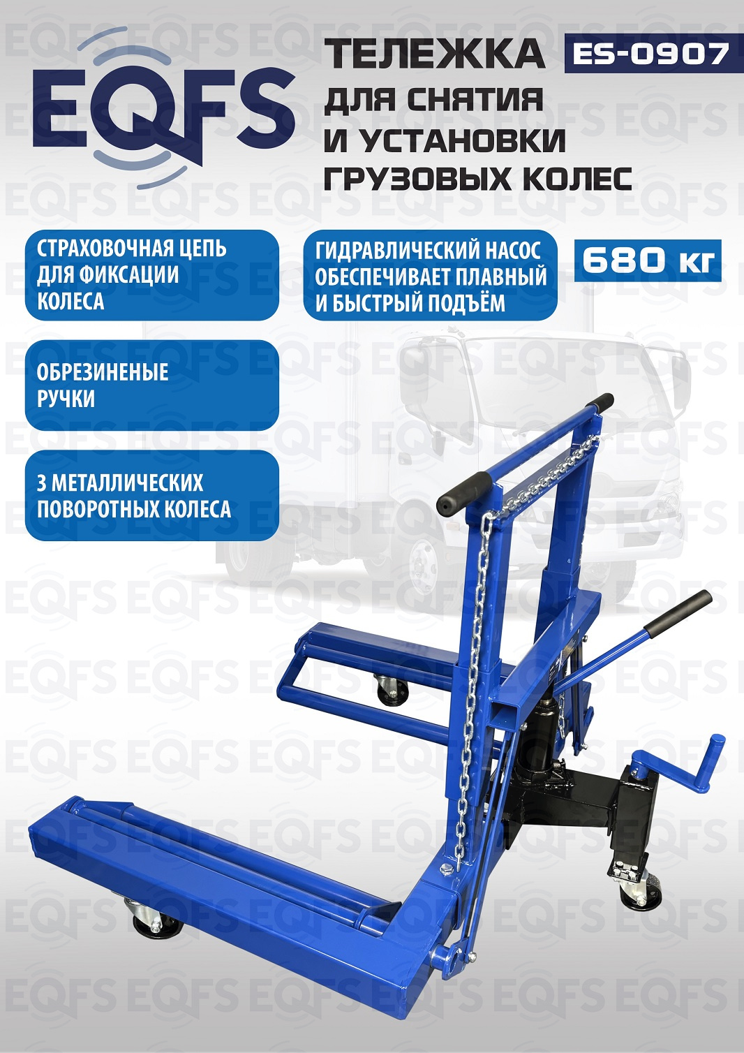 Облегчает труд механика. Простая в эксплуатации, маневренная и удобна в перемещении по любой поверхности. Тележка оборудована страховочными цепями для предотвращения падения колеса. Для снятия и транспортировки колес и колесных пар грузовых автомобилей, автобусов, специальной техники. Максимальная грузоподъемность 680кг. Мин / макс высота подъема 85 - 285 мм.