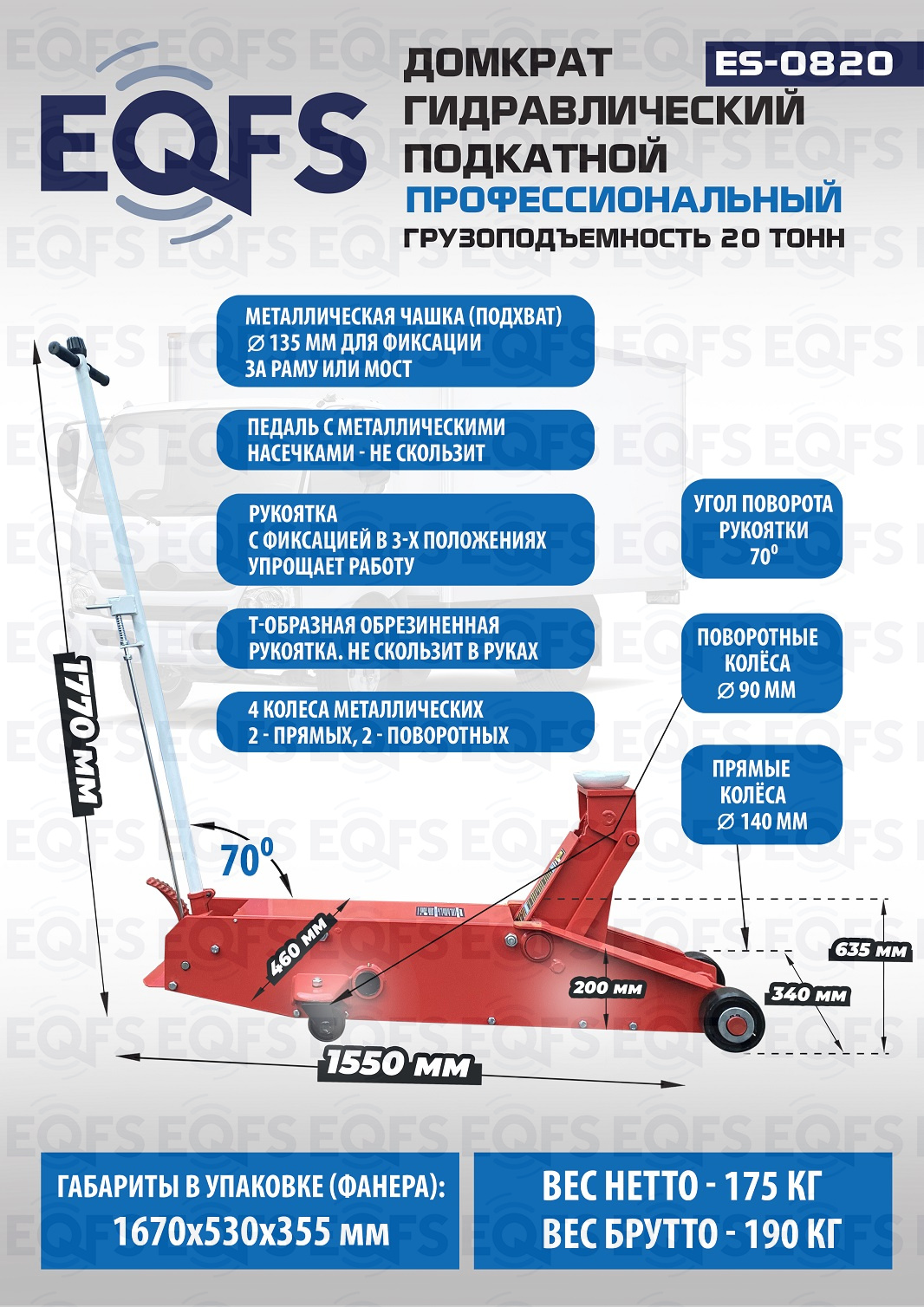 ES-0820 Домкрат гидравлический подкатной г/п 20 т
