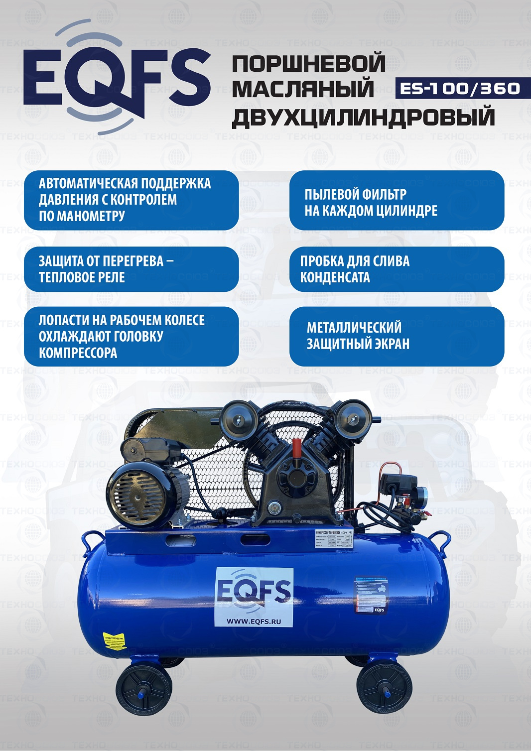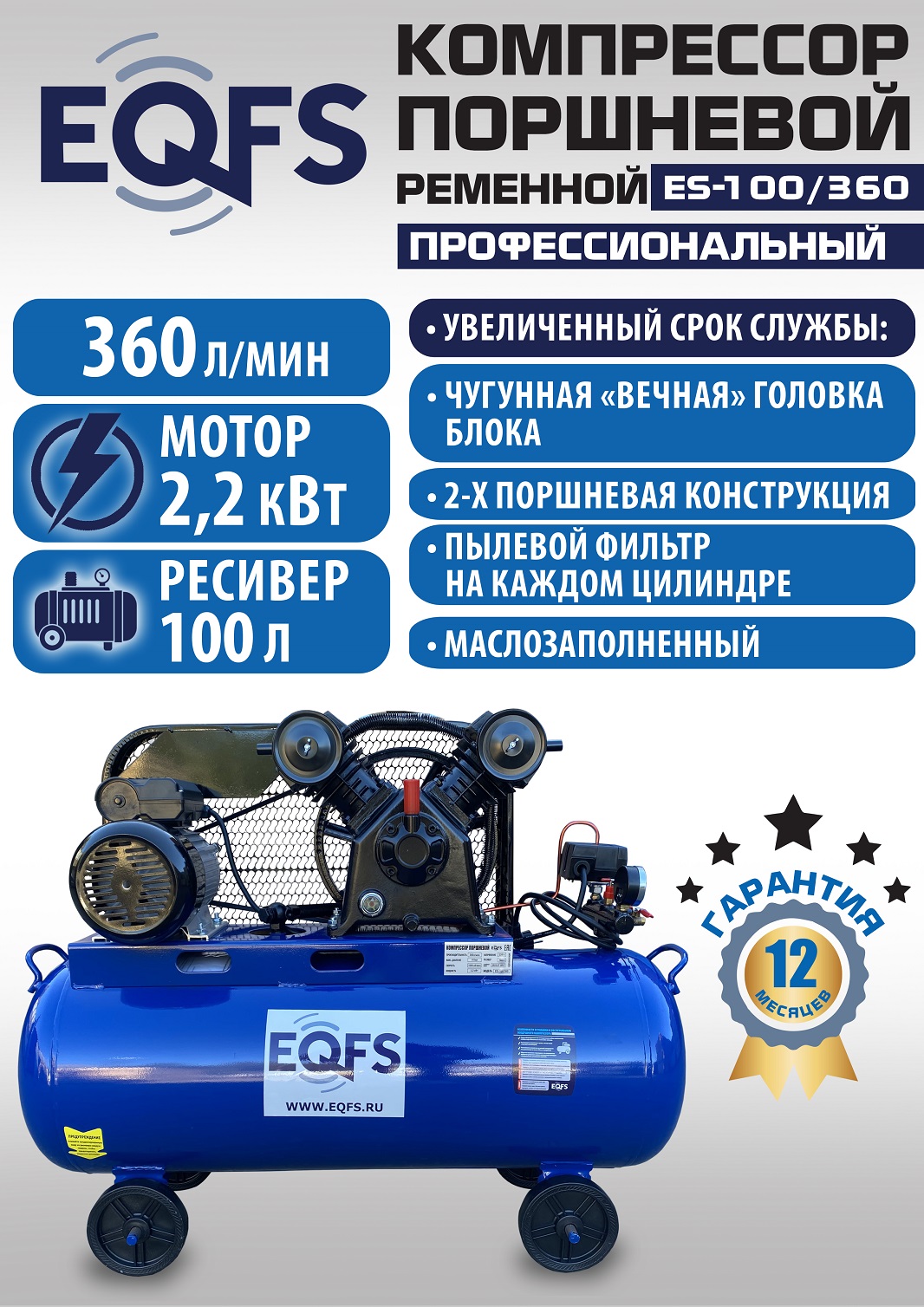 + компрессор поршневой трехцилиндровый производительностью 360 л/мин
