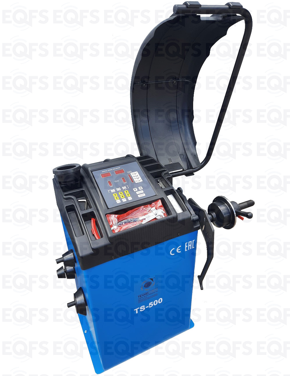 TS-500 Балансировочный станок. В комплекте: кожух с автозапуском + клещи + кронциркуль + быстрозажимная гайка + набор конусов. Для колес диаметром до 760мм. Размеры диска: ширина 3–9” (76-228 мм) , диаметр колеса" - 10–21” (254-533 мм). Максимальный вес колеса с диском – 65 кг. C кожухом. Точность ±1гр. Напряжение 220В.