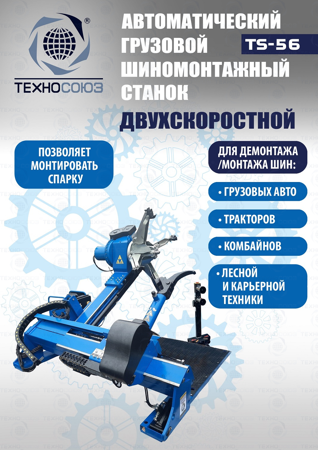 TS-56 Грузовой шиномонтажный станок до 60”, 380В.