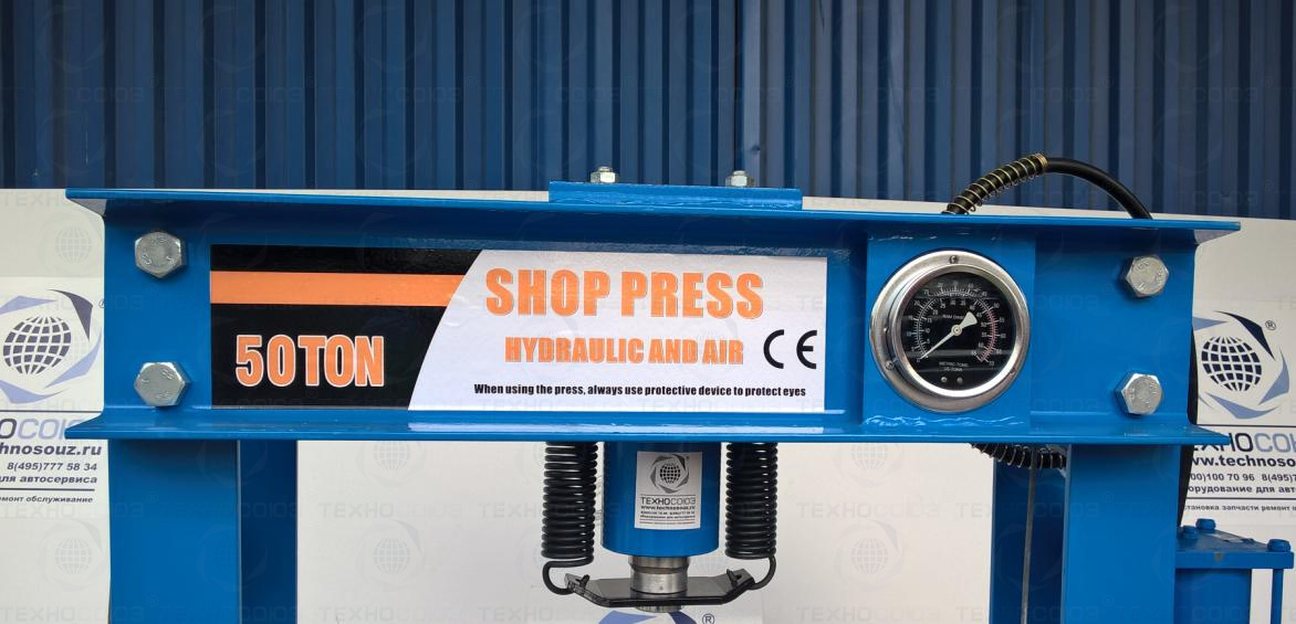 •    Пресс укомплектован гидравлическим ручным насосом с максимальным  усилием 50т.