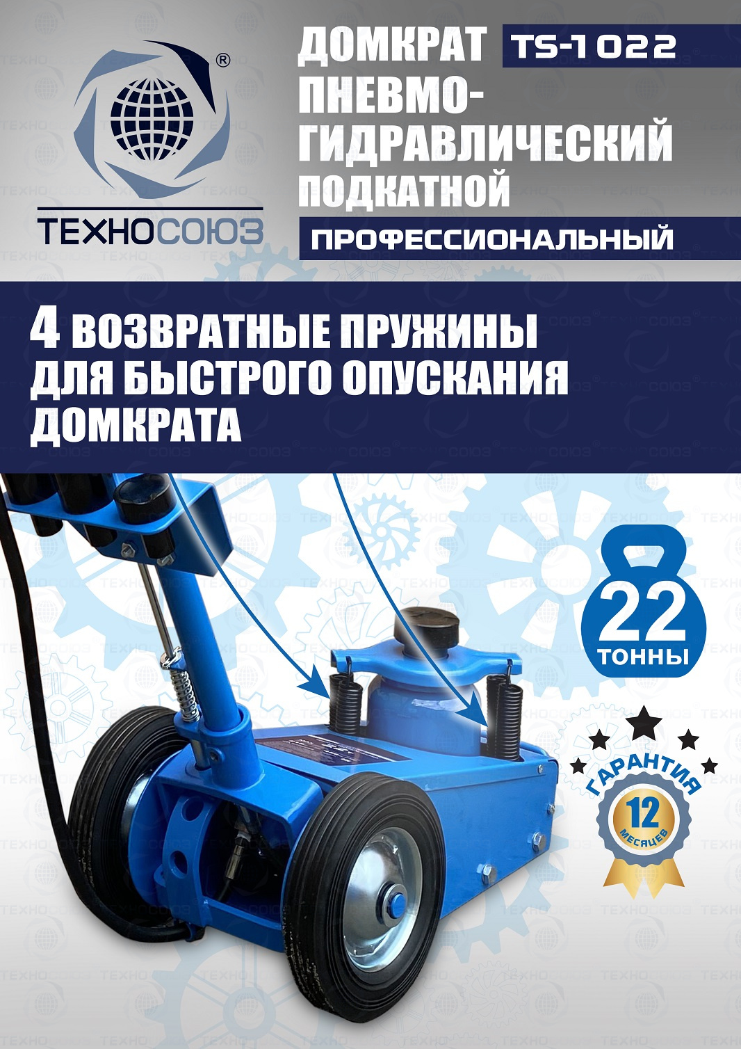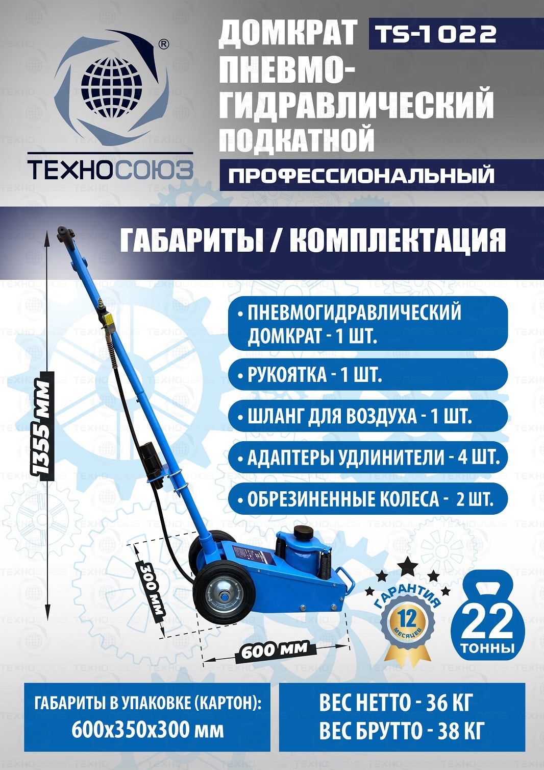 Технические особенности TS-1022 пневмогидравлический подкатной грузовой домкрат: