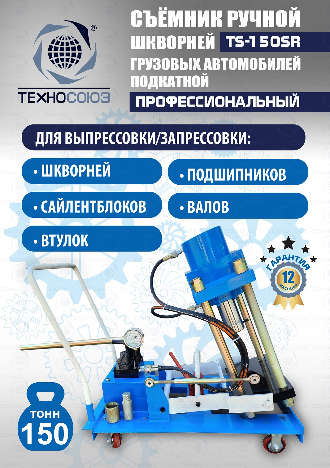 Позволяет работать под разными углами 1 человеку. Сокращает время ремонта. Мобильный. Для выпрессовки шкворней из поворотной цапфы. Для коммерческих и грузовых авто отечественного и импортного производства: MAN, MERCEDES, SCANIA, VOLVO, Корейские и Китайские автомобили, а также трактора, погрузчики, спецтехника. Ручной гидравлический привод. Рабочее окно 400x320 мм. Усилие 150 тонн. Можно использовать при выездных работах. Применяется для выпрессовки подшипников, валов, втулок, сайлентблоков.