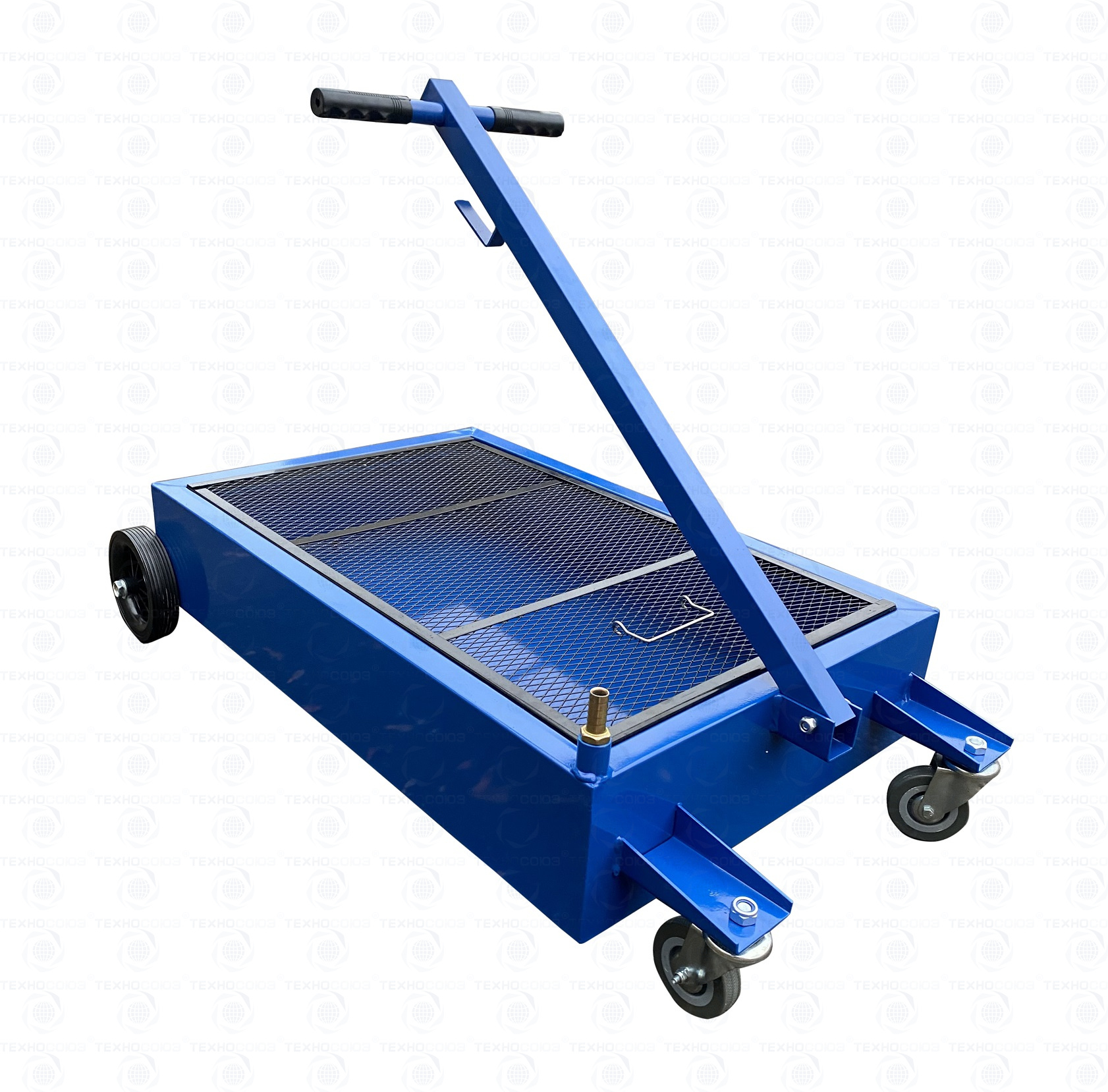 Подкатная. Ручная. Установка для слива отработанного масла 56л., антифризов из ДВС, КПП, мостов автомобилей, квадроциклов, грузовиков, тракторов с клиренсом от 190мм. Регулировка угла наклона рукояти 0˚÷150˚. Слив из установки в бочку самотеком. Сетка улавливает мелкие детали и предотвращает разбрызгивание.